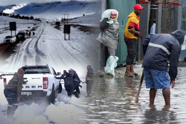 An intense cold front has ripped across parts of South Africa, bringing rain and snow and triggering floods.