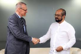 In order to enhance cooperation in the energy sector between Sri Lanka and France, a special meeting was held Tuesday (03) between the French Ambassador to Sri Lanka Rémi Lambert, and Minister of Energy Kumara Jayakody, at the Ministry of Energy.