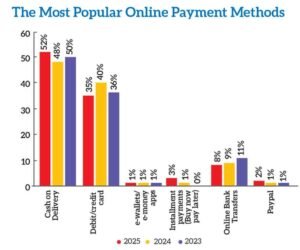 “If you’ve used an online taxi here, you’ve heard drivers ask, ‘Cash or Card?’ This reflects a system still rooted in offline habits,” he explained While COD drives sales, particularly for top-purchased categories such as clothing (43 percent), personal care (23 percent), and electronics (22 percent), it complicates returns and cancellations for businesses.