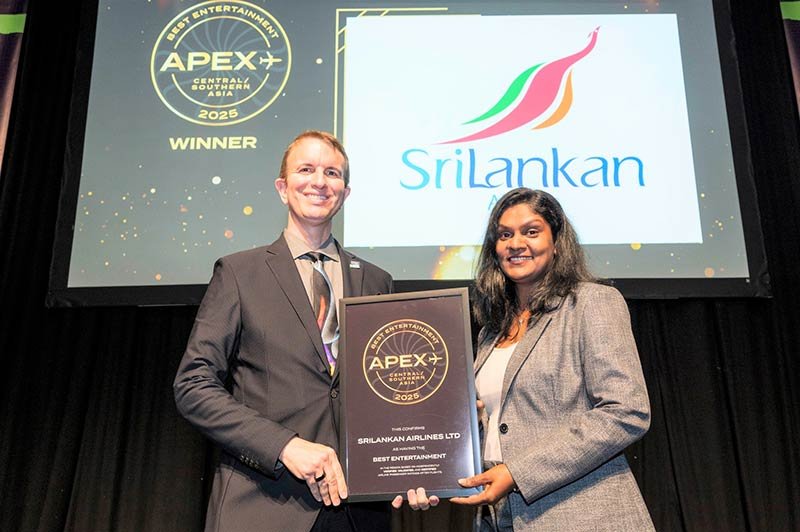 SriLankan Airlines has won the prestigious 2025 APEX Best Entertainment Award in Central/Southern Asia at the FTE APEX Asia Expo, held on 20 November 2024 in Singapore.